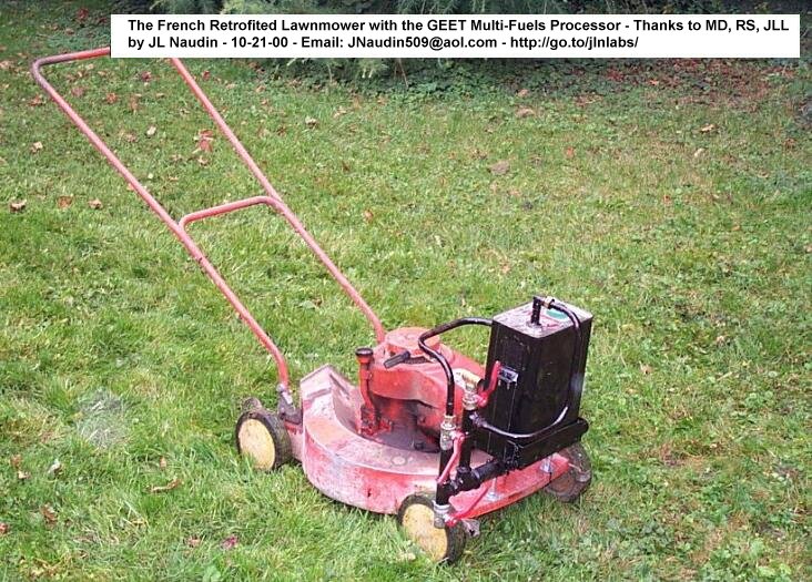 Tests par J-L Naudin d'une tondeuse rétrofittée avec le Processeur Multi-Carburants
