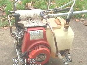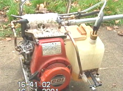 Moteur Honda 240 cm3, le premier "rétrofitté". Cliquez sur la photo pour voir ou revoir les explications. |
