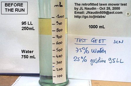 Commentaires : La caractéristique la plus intéressante dans le Processeur Multi-Carburants de GEET est que ce système est capable d'utiliser n'importe quel type d'hydrocarbures comme des huiles usées, du méthanol, de l'essence, des solvants, du kérozène, du bio-diesel et le tout mélangé à de l'eau... Les essais viennent juste d'être commencés et des tests de performance seront conduits prochainement. Aujourd'hui, la seule chose que je peux dire, c'est que le Processeur Multi-Carburants de GEET fonctionne TRES BIEN sur ma propre tondeuse modifiée ( regardez les vidéos ) et ce, en parfait accord avec le schéma publié par Pantone et ses observations :