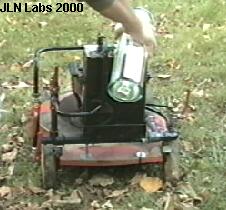 De mesurer la quantité de carburant consommée par minutes par le moteur ( 3.5 Cv LAV35 de Tecumseh ) de la tondeuse. Le carburant utilisé est composé d'un mélange de 75% d'eau ( 750 mL ) et de 25% d'essence 95 SP ( 250 mL ).