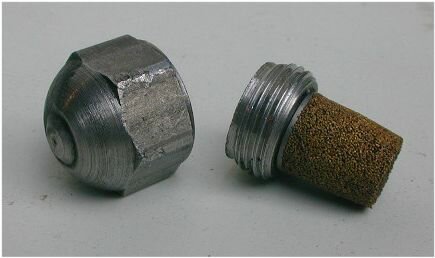 - Pour le bulleur, j'ai remplacé le bouchon de tube percé par un filtre en bronze poreux provenant d'un gicleur de brûleur à fioul. Les bulles sont donc en principe plus fines. Mais il est trop petit et freine trop le circuit si bien que l'aspiration est supérieure à la pression et le bidon se contracte, la mousse remonte alors assez haut et doit être aspirée ce qui provoque un fonctionnement irrégulier et des calages. Je vais essayer d'en mettre 2 ou 3, ou de faire plus classique.