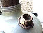 Il s'agit là d'un vase d'expansion de Renault 5 (trouvé à la casse). D'origine il a un orifice dans le fond, ce qui nous permet d'y raccorder l'arrivée d'essence. |